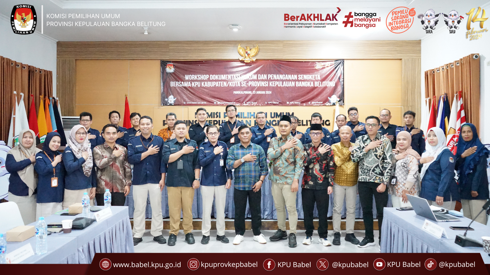 Pangkalpinang, babel.kpu.go.id - dalam rangka peningkatan kapasitas dalam penyusunan keputusan, pengelolaan dokumentasi hukum dan kesiapan menghadapi sengketa dalam pemilihan umum 2024, Komisi Pemilihan Umum Provinsi Kepulauan Bangka Belitung menggelar Workshop Dokumentasi Hukum dan Penanganan Sengketa, di Ruang Rapat KPU Babel, pada Selasa (23/1/2024).